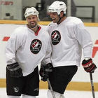 Без курьёзов в те четыре дня сборов дела, конечно, обойтись не могли. Один из них случился, когда тренер, моделируя игру сборной на Олимпиаде, объединил в одном звене Оуэна Нолана, Эрика Линдроса (для справки: 190 см роста на 107 кг «живого» веса) и Кейта Примо (193 см / 100 кг). По теории эта тройка должна была забивать голы по методике силового давления на соперника. На практике же это более всего напоминало «тактику выжженной земли» или применение напалма в военное время: вот уж действительно трещали борта, когда эти «Три богатыря» с картины Васнецова обменяли палицы и доспехи на коньки и клюшки.